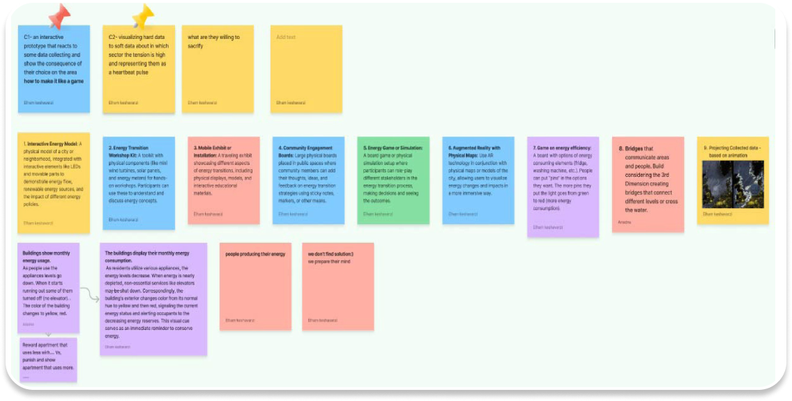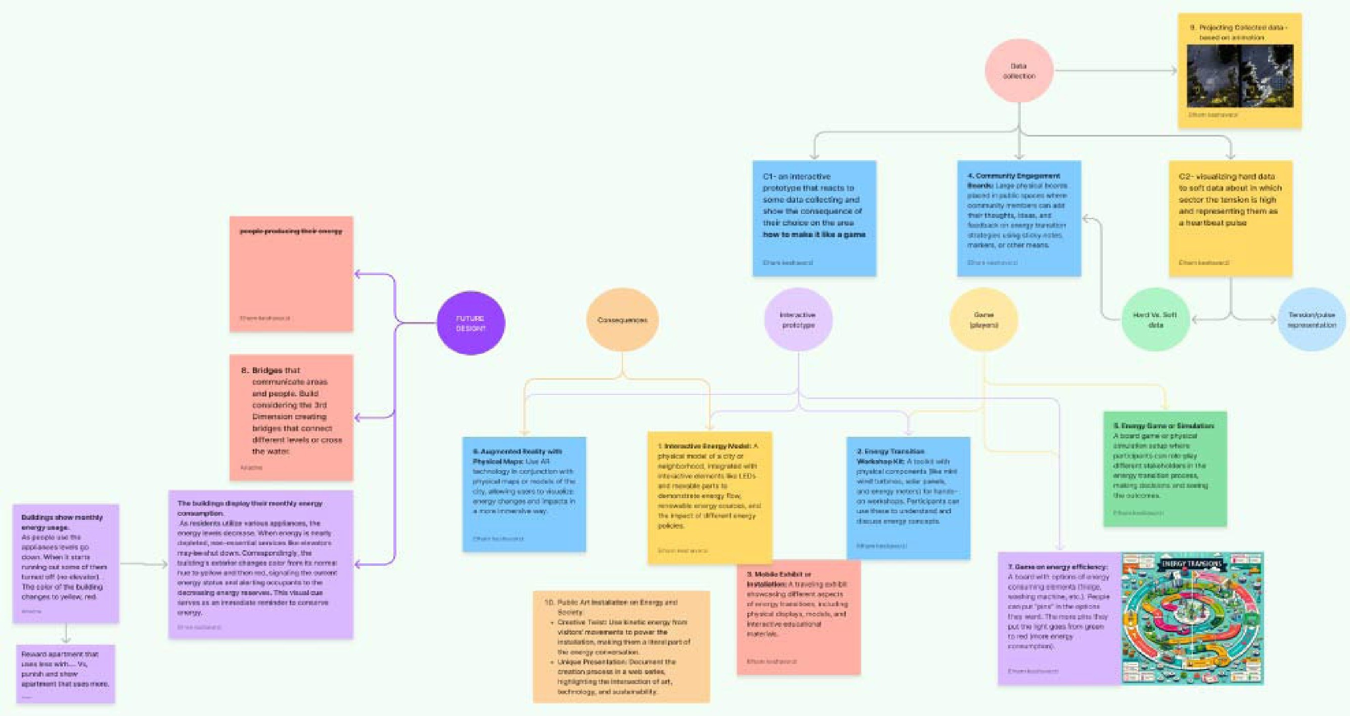 Through brainstorming, mapping exercises, and ideation, we noticed a recurring theme: play. Gamification became a way of getting people involved and participating, while helping players understand the consequences of urban decisions, it also allowed feedback for data recollection.