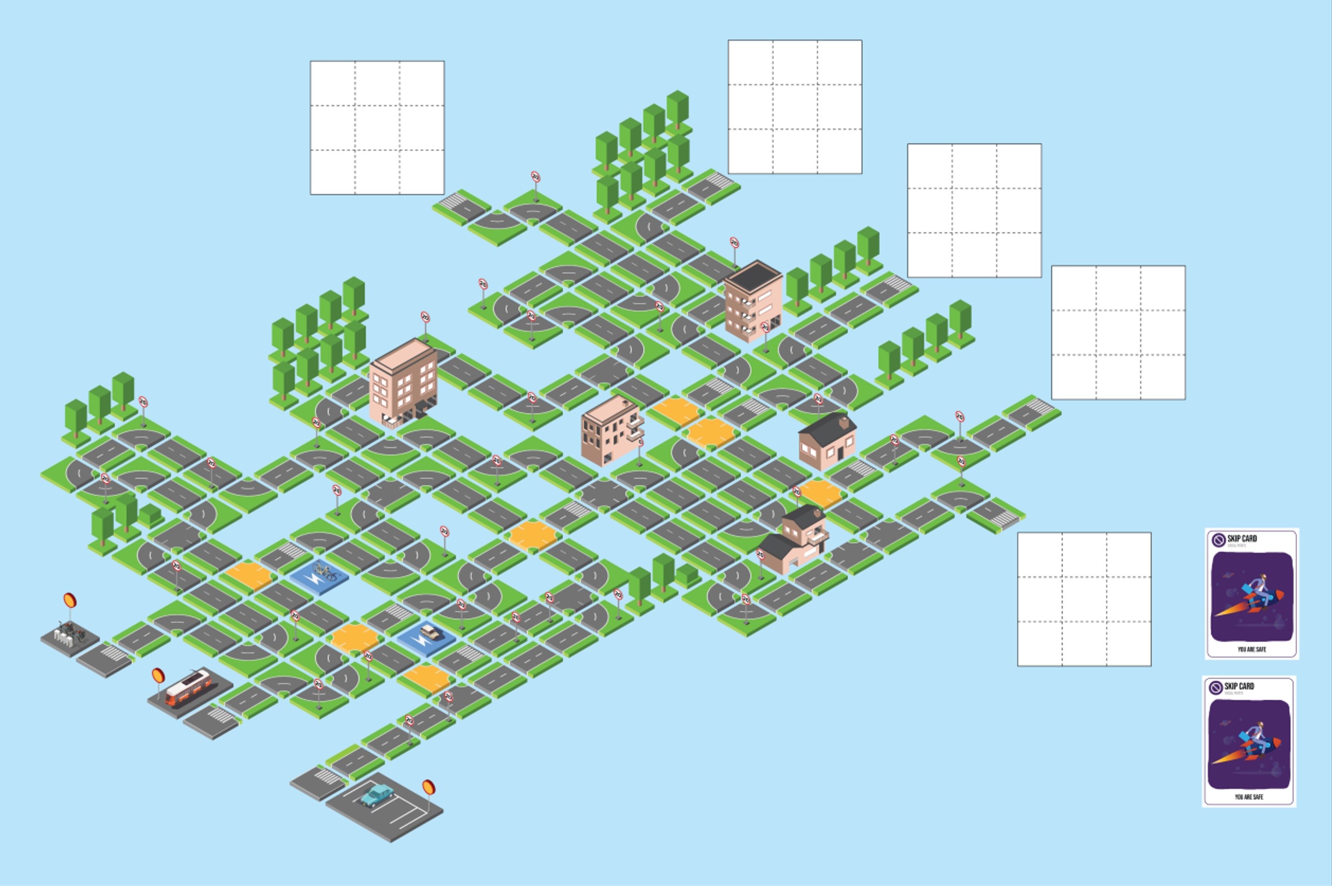 Simplified actions: By assigning fixed movement speeds to each vehicle, I eliminated the need for dice and created a faster-paced gameplay experience. The incorporation of action cards in specific places also improved the dynamics of the gameplay.